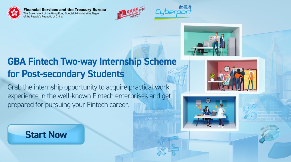 The Financial Services and the Treasury Bureau launched the “GBA Fintech Two-way Internship Scheme for Post-secondary Students“ with an aim to enlarge the local Fintech talent pool. It enables post-secondary students who study Fintech Programmes in Hong Kong and in the Mainland cities of the GBA to acquire internship experience in Fintech companies and helps them develop an early interest in pursuing their career in the Fintech field.Target GroupThe Scheme is targeted at full-time students studying fintech-related subjects in post-secondary institutions in Hong Kong and Mainland cities of the GBA, including higher diploma and associate degree students, undergraduates, master's degree students or postgraduates.Internship PositionInternship positions in Hong Kong accept applications from Mainland students studying in Hong Kong, as well as Mainland students studying in Mainland cities of the GBA who hold valid permits to enter Hong Kong. Internship positions in Mainland cities of the GBA accept applications from Hong Kong students studying in Hong Kong and Mainland cities of the GBA.Internship PeriodThe Scheme will provide students with a two-month internship opportunity (with extension up to six months)Internship AllowanceHK positions: HKD12,000 (per month) Mainland cities in GBA positions: RMB10,500 (per month)Application Period2025/2026 Winter-term internship will accept application starting from today to 23 February 2026. The scheme will end upon the expiry of the application period or when all the internship quotas have been placed, whichever is earlier.For more information including detailed eligibilities and application procesures, please visit the dedicated website.