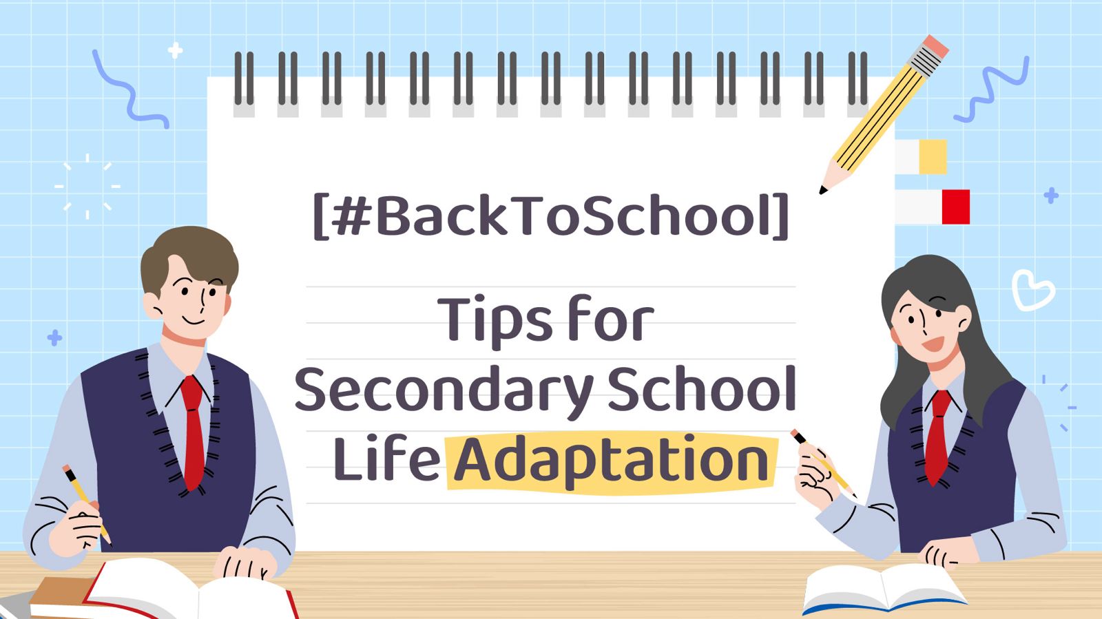 Are you ready to get back to the classroom? As always, it is essential for us to stay positive and connected with the community in the face of challenges ahead. Here are some back-to-school tips to help you prepare for the new start.Tips 1 - 【Entrance to Form One】You may more or less feel nervous and stressed when being progressed to the secondary school which is a new environment. Don’t worry, there is always a first time for everything in life. It just takes a bit of time to adapt to the new learning environment. Stay strong! Nothing can overwhelm you! Enjoy your new secondary school life. >>> Encouraging Messages for F.1 StudentsTips 2 -【Ready Get set, Go】What can you do to overcome the challenges of a new school environment?1. Be prepared – prepare for your lessons and make an effort to do your best at school.2. Find support – Talk with your teachers, parents or the school social worker. They are willing to help.3. Learn to relax – Take some deep breaths. Relax your muscles.>>> Read more on Ready… Get set, Go!Tips 3 -【Maintain Physical and Mental Health】In addition to preparing for lessons, you should also maintain physical and mental health. Do develop good habits for preventing and relieving stress, and take good care of your body as well as your mind!>>> Read more on 7 good habits to prevent and cope with stressNeed help? Don’t forget them! Even though there may be difficulties at times, you can always get support! Other than teachers and parents, these organisations are pleased to listen to your thoughts!For more tips, you might visit YouthCan’s “Back to School Tips - with Love”.Remember to stay positive and connected with the community. Have faith to yourself and enjoy a colourful life. You surely can make it!For more details, please visit the Student Health Service website.