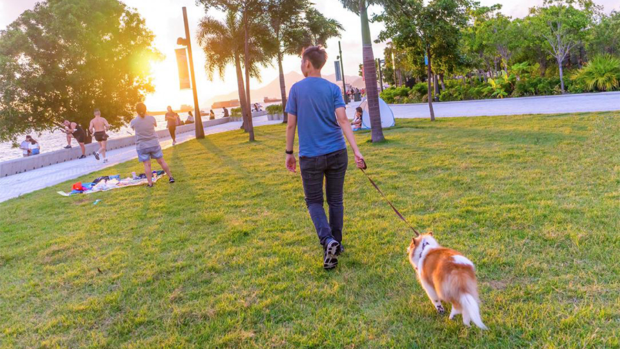 宠物和小朋友一样天性活泼好动,作为「家长」的主人,自然要多发掘一些让毛孩「放电」的假期好去处。其实近年社会关注动物权益议题,不少场所都设有宠物友善措施和设备,让主人可放心带上爱宠出行。西九文化区 ── 闹市中的人宠共融自然空间西九文化区邻近油尖旺区,不论是乘搭交通工具或是自驾前往均非常方便(可参考前往指南);如果是驾驶人士,则建议泊于艺术公园(E区)停车场的时租车位。区内不仅欢迎宠物进入,更重要是艺术公园、苗圃公园和海滨长廊旁边等多个空间均有绿意盎然的大草坪,供游人和宠物自由歇息、散步,自然也会遇到其他主人带着宠物到来,让大家有机会互相认识,交流宠物的饲养心得和乐趣。不单是自然环境令人心旷神怡,人与宠物共融的氛围更让人身心放鬆,享受这片市区内难得的人与自然和动物共享的空间。现时西九文化区内亦开设了专门的宠物区,让宠物可以在内无束缚地随意走动,主人也可以在内放心与爱宠玩玩游戏和互动。宠物区内也设有宠物粪便收集箱和供水设备,大家记得自行清理好宠物的便溺物,做个有公德心的好主人。离开宠物区时也不要忘记帮爱宠繫回牵绳,避免牠们不小心走失。和宠物玩得累了,艺术公园旁边的餐厅都有提供各款轻食,例如其中的Hooman就是一间宠物友善咖啡店。除了提供精品咖啡外,还有各款以狗狗品种名称命名的特色热狗,还有狗零食出售专供狗狗享用。坐在室外座位和爱宠各自享受美食,抬起头就能看到维港的无敌大海景,可谓难得的週末假期体验。(图片和文字均由西九文化区提供)