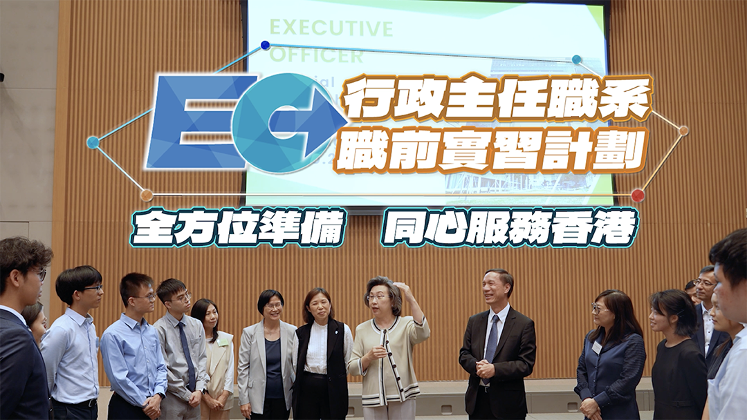 「行政主任職前實習計劃」安排實習生到不同政策局或部門實習,由資深行政主任(EO)指導下,親身體驗政府工作,為日後入職二級行政主任打下紮實基礎。實習生善用課餘時間參與實習計劃,從政策推行、資源管理到系統/項目規劃與發展,全方位體驗行政主任的多元化工作。這些寶貴的經歷讓他們服務市民的決心變得更堅定。請收看他們的工作情況及分享。