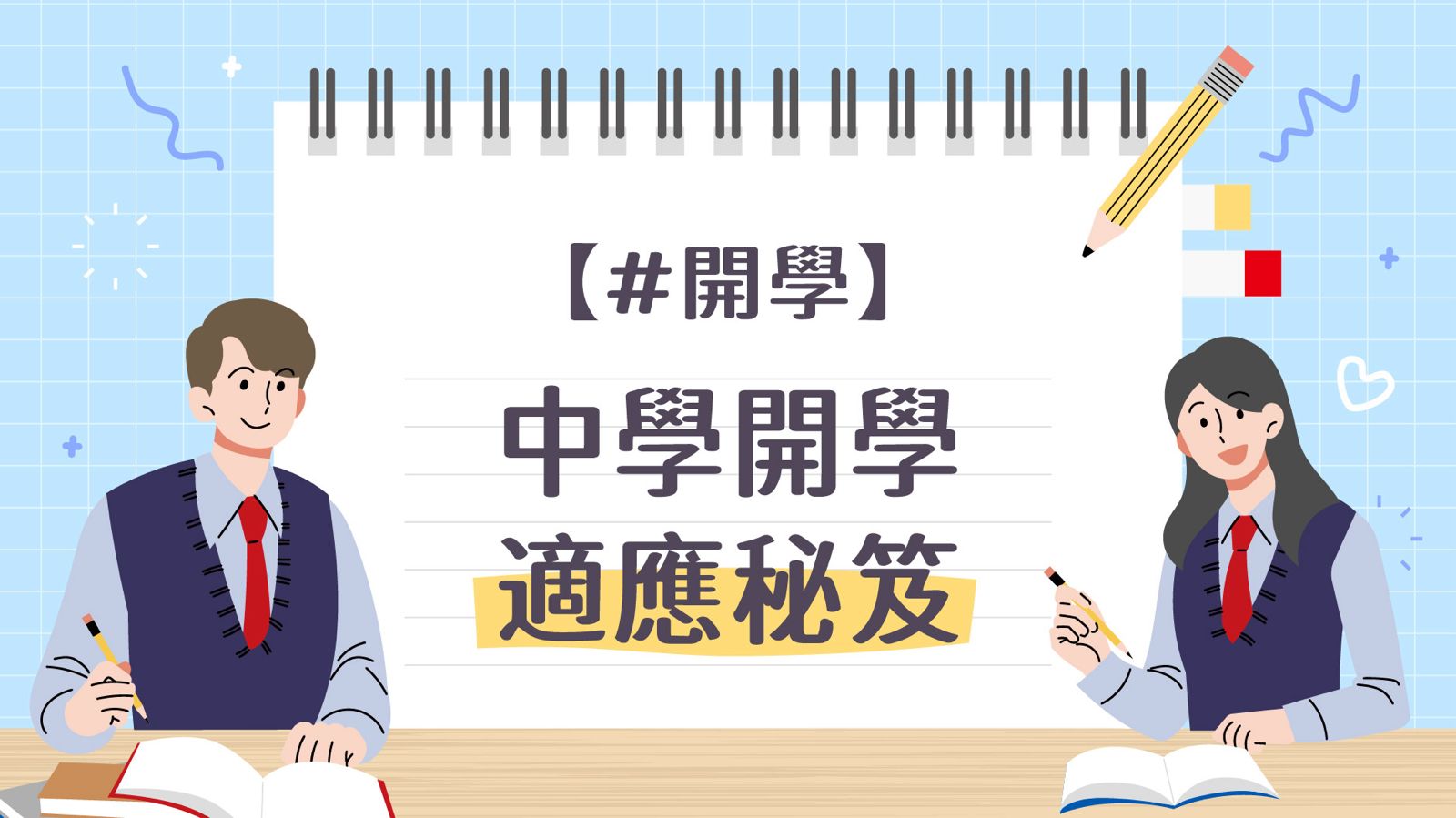 開學在即,同學們,你們準備好重返校園了嗎? 新學年、新環境,確實需要同學們抱著正面的思維和樂觀的態度,擁抱挑戰。以下是小編為你輯選的開學秘笈,讓你為新學年的新開始做好準備。開學秘笈 1 - 【升中打打氣】升上中學,面對全新的環境和學習要求,難免會感到緊張和有壓力,但不要擔心!事實上,升中需要時間適應,樂觀做人,難關總會過,好好享受多姿多彩的中學生活吧!>>> 為升中嘅同學仔打打氣開學秘笈 2 -【開學Get set, Go】面對開學新環境的各種挑戰,你可以做些什麼?1. 及早做好準備 – 上課前先備課,預習老師將會教的內容2. 尋找啦啦隊 – 老師/父母/社工都會樂意幫我3. 學習放鬆自己 – 深呼吸、肌肉鬆弛練習。>>> 更多請瀏覽 開學Get set, Go!開學秘笈 3 -【保持身心健康】除了備課,大家亦應保持身心健康,養成預防和紓緩壓力的好習慣,全方位照顧好你的身體及心靈!>>> 更多請瀏覽 預防和紓緩壓力的7個好習慣遇到困難時,隨時都可以找到支援!要找好幫手?別忘了他們!除了老師和家長外,很多機構也樂於聆聽大家的心事!YouthCan已經準備好一系列的信息圖表和影片向你傳授開學秘笈,更多請瀏覽「愛‧返學之開學秘笈」。只要你願意抱著正面的思維和樂觀的態度投入中學生活,你能夠活得精彩!你一定做得到!如欲了解更多,請瀏覽衞生署學生健康服務網頁。